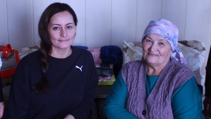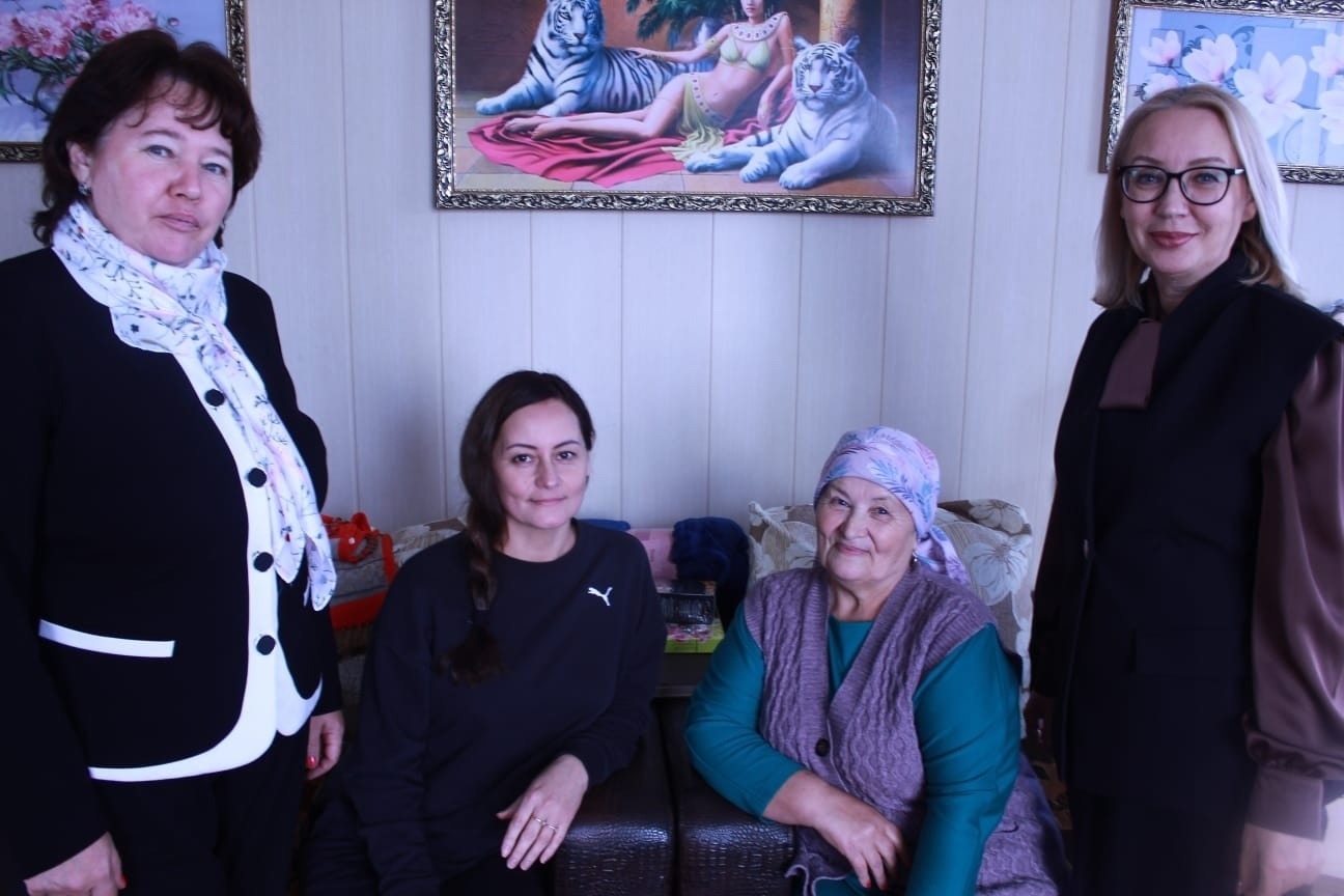С добрым, приятным человеком можно беседовать долго. Мы засобиралась в дорогу. Вдруг открывается дверь, и – перед нами та самая «Кошка». Приехала повидаться перед отъездом на СВО в родительский дом. Так получилось, что нам суждено было встретиться. Невысокого роста, миниатюрная молодая женщина, а сколько в ней бесстрашия и энергии. Приехавшие вместе со мной руководитель Волонтерского штаба района Нелли Сидорова и глава поселения Раушанья Биктимирова с радостью сделали фото на память и подарили маме участниц СВО теплый плед. Обнялись, пожелали удачи. Хозяйка с домочадцами вышли проводить.