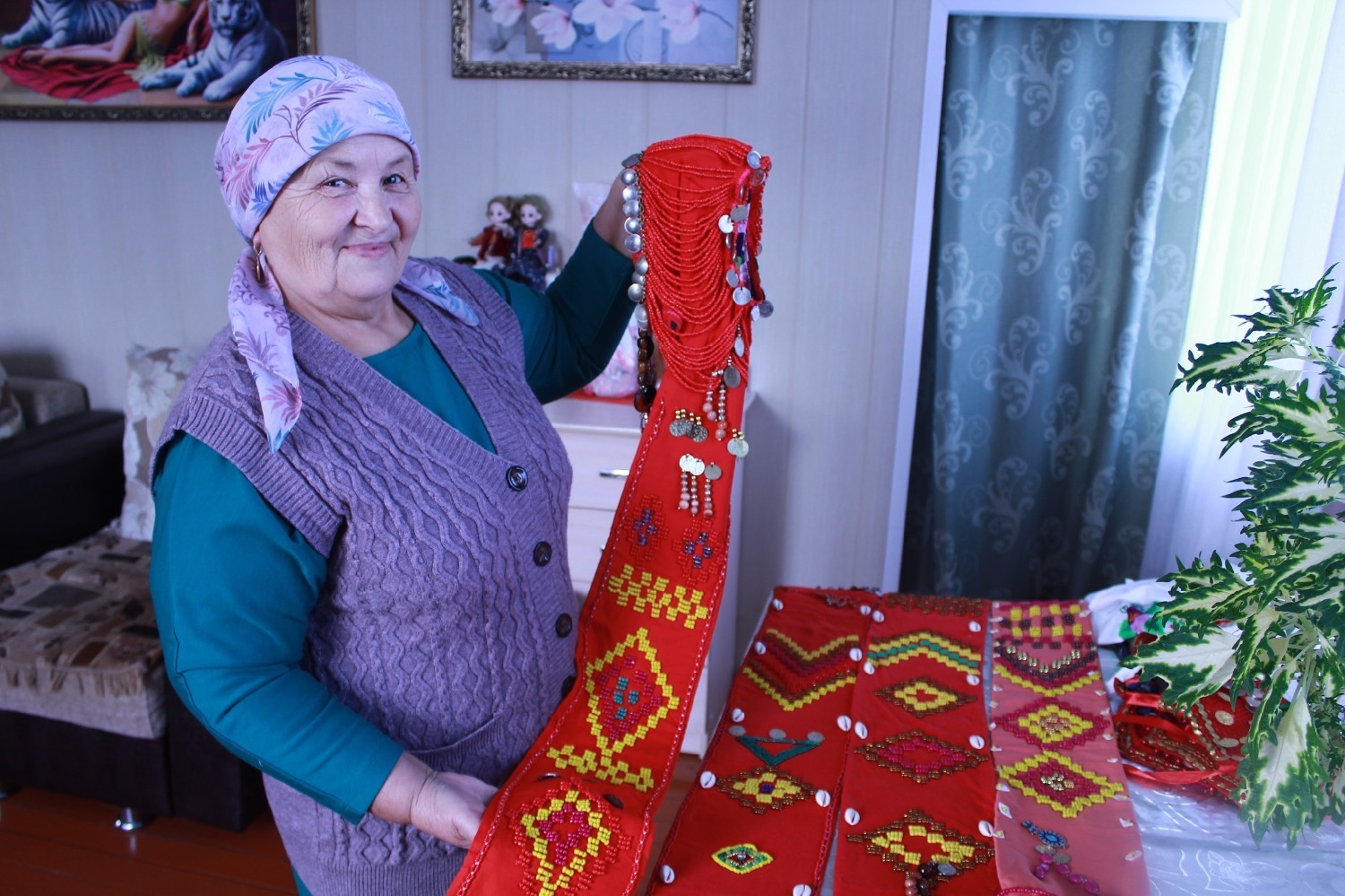 Уютная деревенька Утеймуллино расположилась недалеко от центра Нагадакского сельского поселения – деревни Татарский Нагадак в Аургазинском районе. Аккуратный бревенчатый дом, светлые прибранные комнаты, на стенах картины. Здесь живет простая, но очень интересная женщина. Ее зовут Роза Азнабаева. Она самобытный мастер по изготовлению элементов башкирского народного костюма. На одном из районных мероприятий мне посчастливилось в первый раз увидеть ее работы. Настолько они были яркими и запоминающимися, что очаровывали с первого взгляда. При первой же возможности мы решили отправиться к ней в гости.