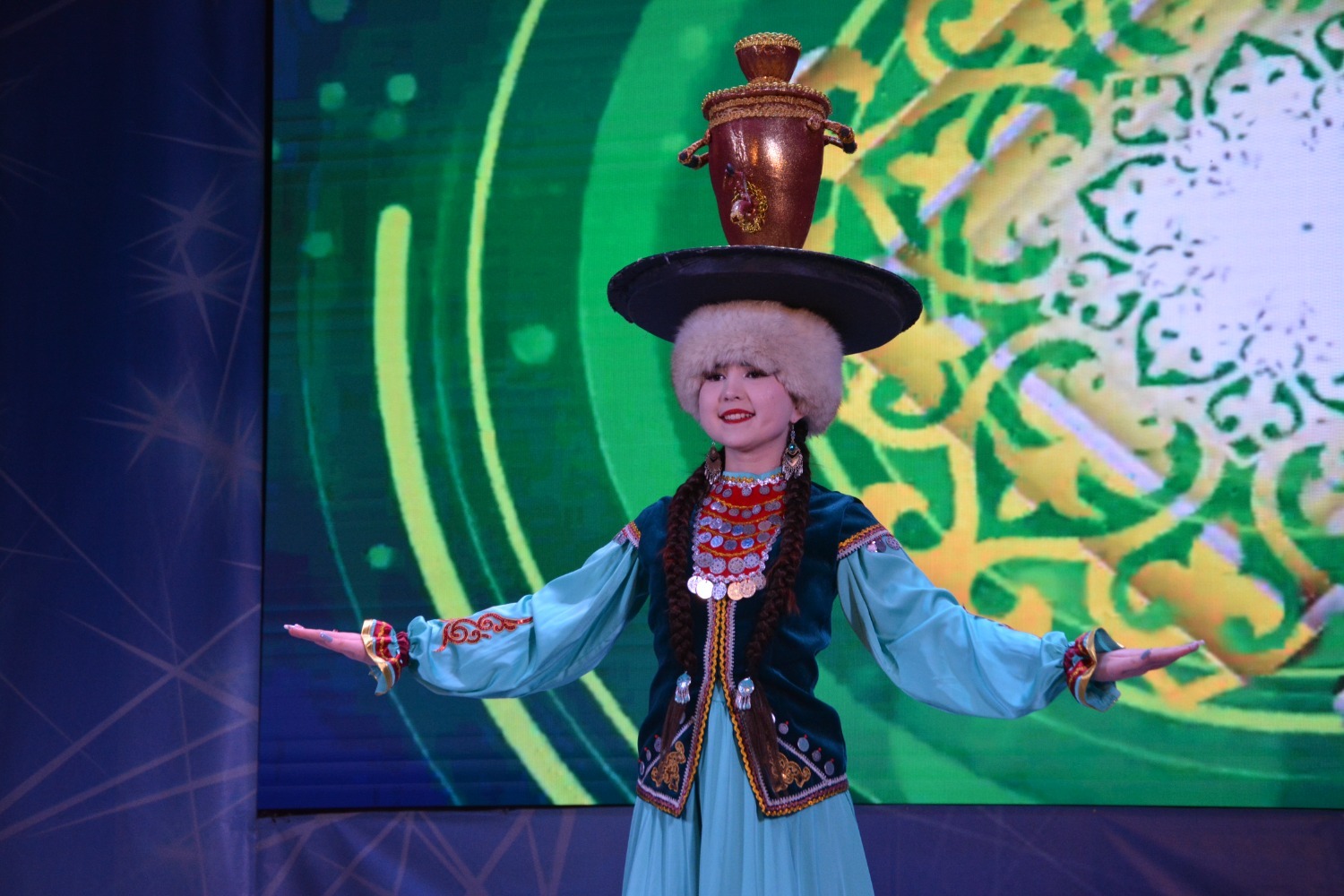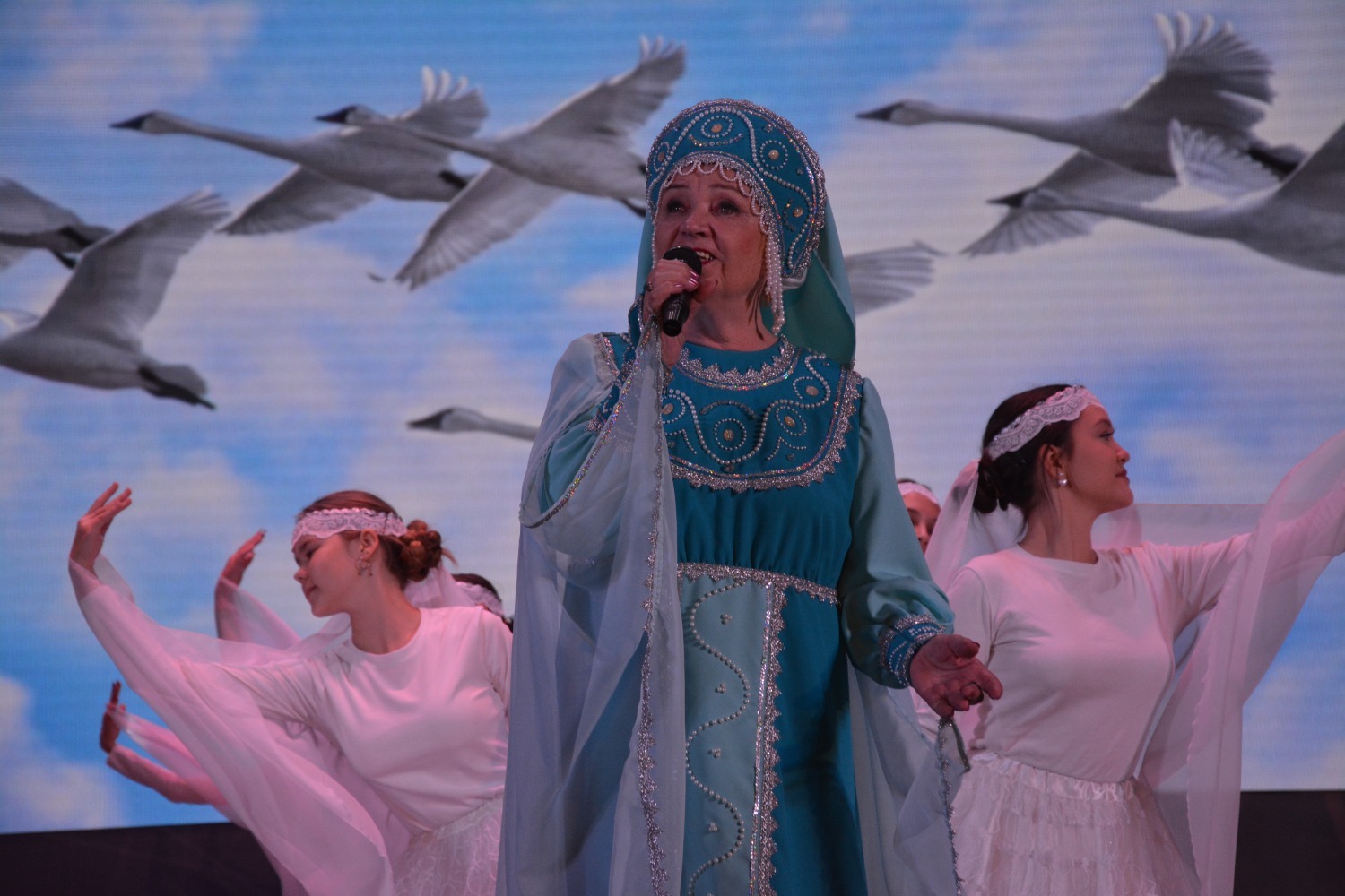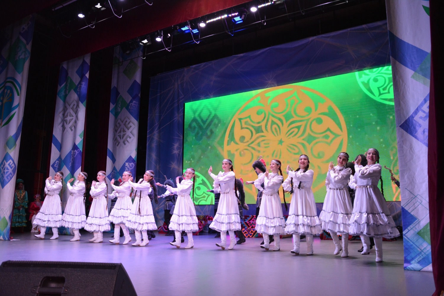 Настоящим украшением концерта стали выступления творческих коллективов района. Зрители тепло встречали хореографические ансамбли "Созвездие", "Фантазия", "Радость" и образцовый ансамбль народного танца "Таратау".