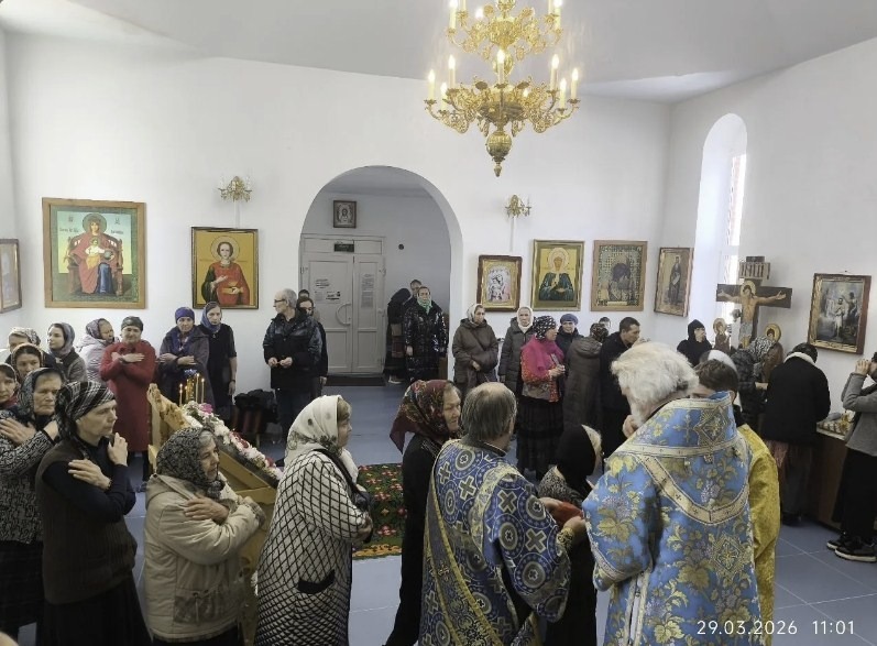 На сугубой ектении Архипастырь вознес особые прошения об Отечестве нашем и его защитниках, по сугубой ектении прочел молитву о Святой Руси. По окончании Литургии Владыка Николай совершил славление Божией Матери и прп. Марие Египетской, а также заупокойную литию. Затем Его Преосвященство обратился к собравшимся с проповедью. После богослужения для всех желающих состоялась праздничная трапеза.
