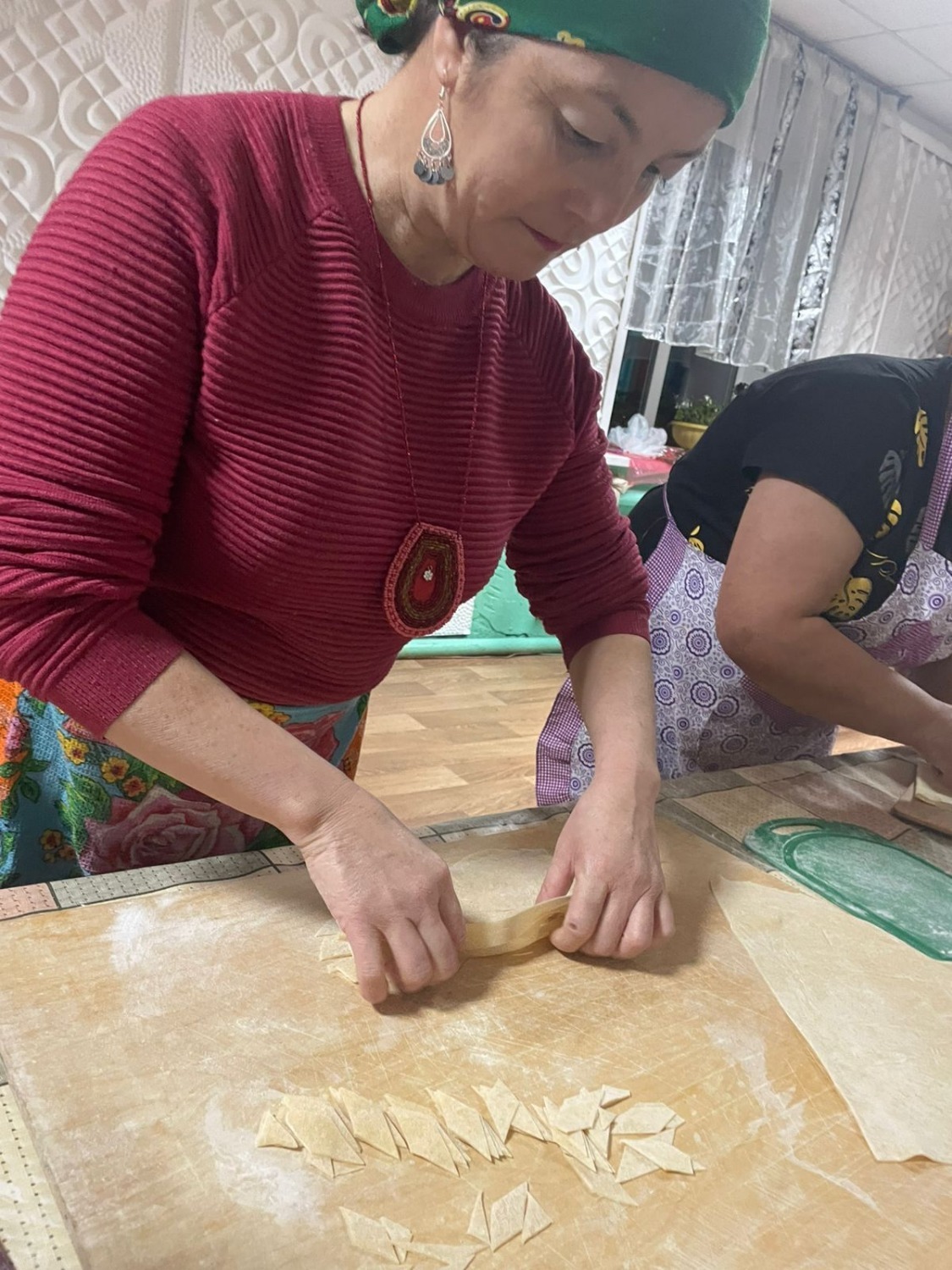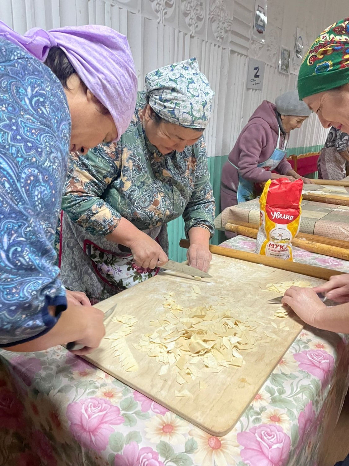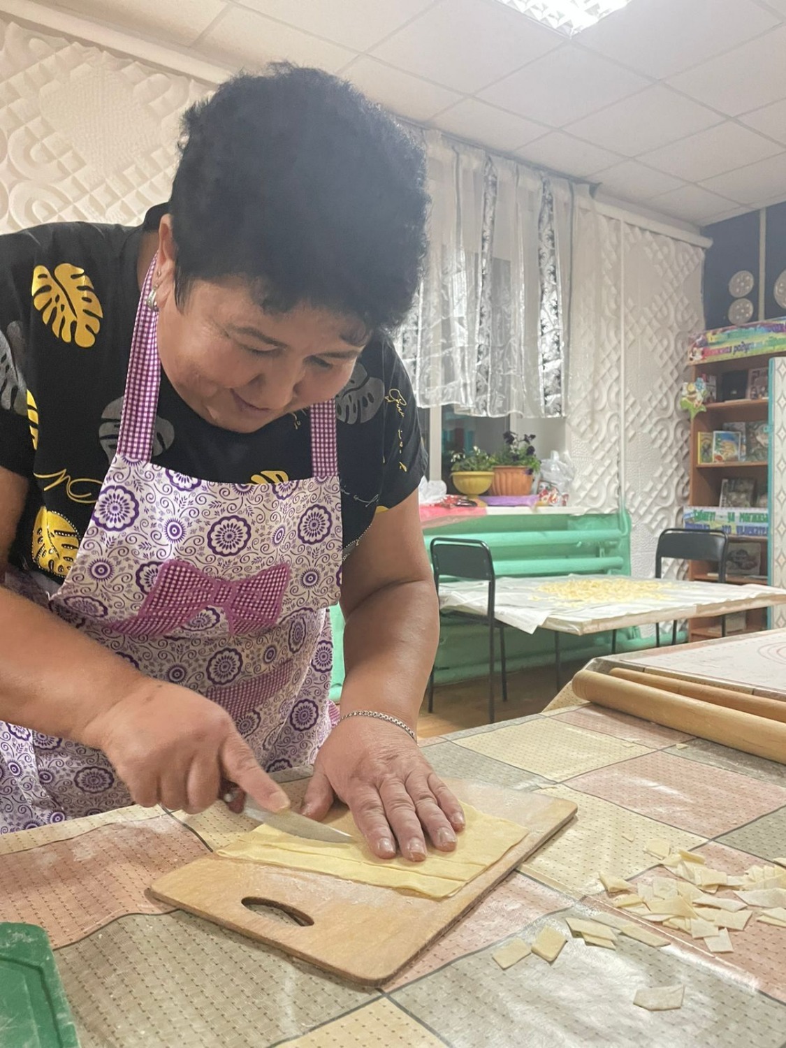 Вчерашним вечером в Турумбетовском СДК для наших земляков-воинов готовили лапшу салму. Организовали мероприятие культработники - Расима и Айнур Сайфутдиновы. Заботливыми руками 15-ти хозяюшек весь вечер нарезались тоненькие квадратики и ромбики из теста. С собой женщины принесли ножи, скалки, а яйца и муку предоставили инициаторы.