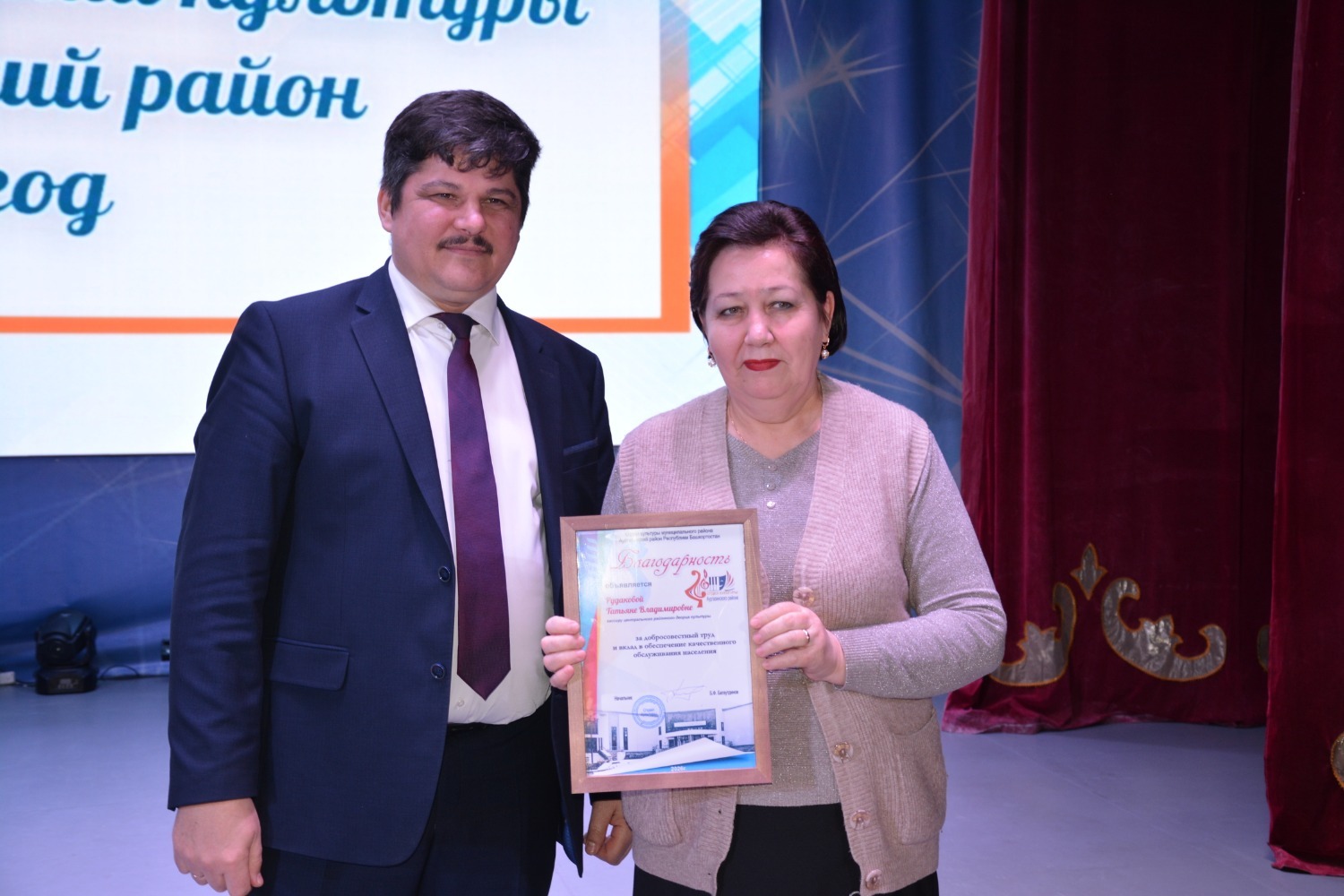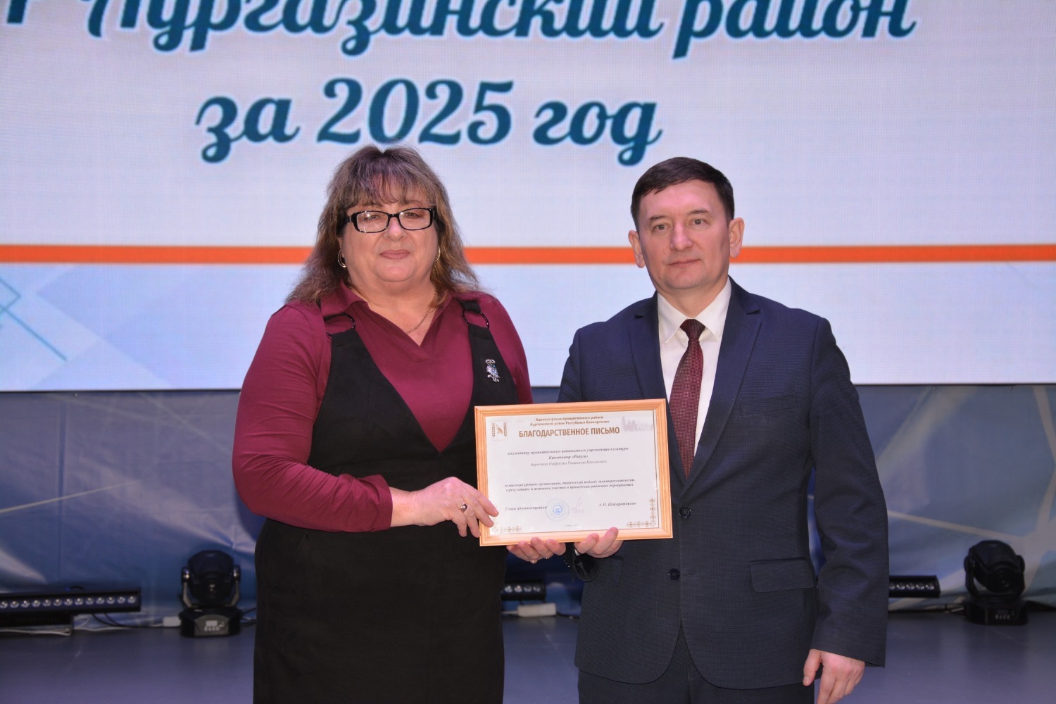 - коллектив муниципального автономного учреждения культуры Кинотеатр «Радуга», директор Нафикова Раушания Касымовна за высокий уровень организации, творческий подход и активное участие в проведении районных мероприятий.