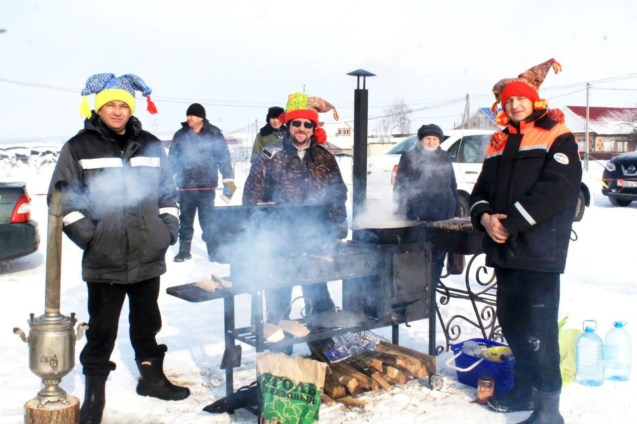 Перед началом торжества глава села Николай Ефремов поздравил всех с Масленицей и поблагодарил тех, кто был инициаторами и организаторами праздника: Алексея Захарова, Андрея Захарова, Дениса Захарова и Алексея Алексеева. Мужчины-волонтеры занимаются строительными работами и, кроме Алексея-выходца из села, живут в Чуваш-Карамалах. Им пришла идея провести такое мероприятие для своих семей. Обратились с идеей к культорганизатору здешнего клуба. Альбина Сунагатова предложила расширить праздник до народного гуляния села. К ним присоединился местный Женсовет, и все дружно принялись за подготовку.
