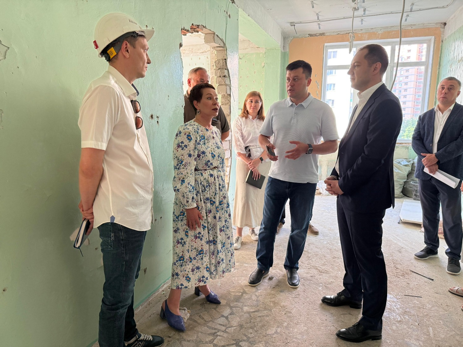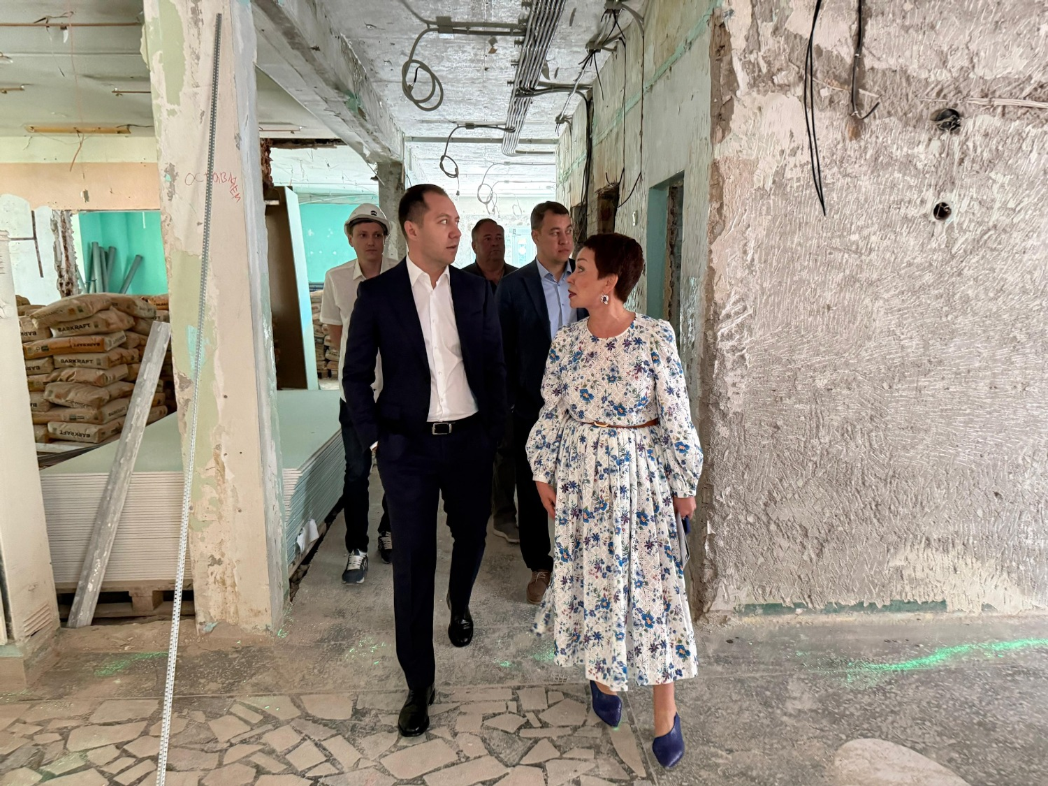 В настоящее время на объекте проводятся работы по черновой отделке на первом этаже. Также осуществляется замена оконных конструкций и демонтаж кровли.