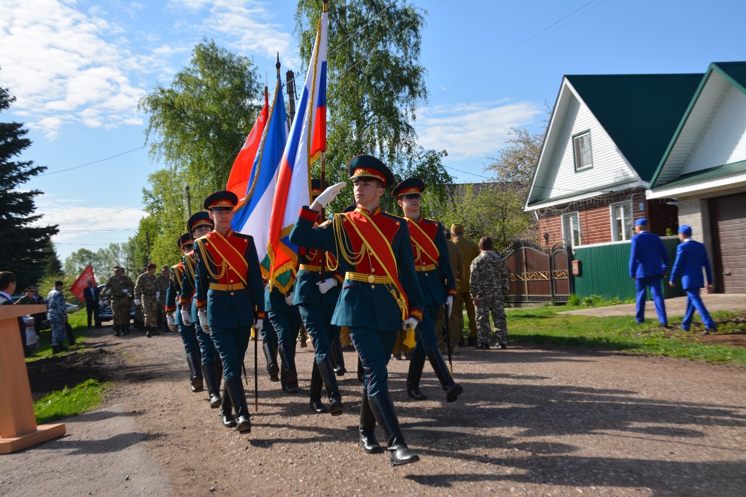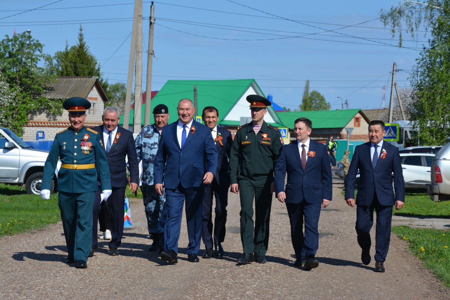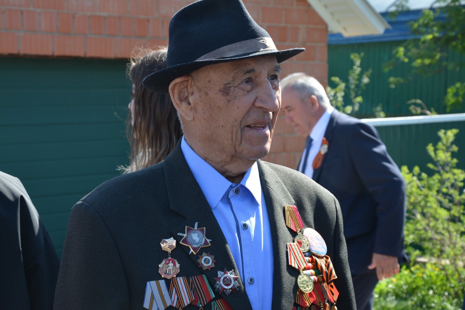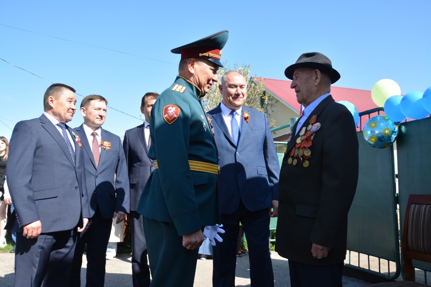 Юбилей ветерана собрал тех, кому дорога память о Победе. У ворот его дома выстроились: заместитель командующего Приволжским ордена Жукова округом войск Росгвардии по военно-политической работе полковник Вячеслав Морозов, заместитель премьер-министра республики Ирек Сагитов, депутаты Госсобрания-Курултая РБ Рамиль Бадретдинов и Загир Хакимов, глава администрации района Арслан Шагаетдинов.