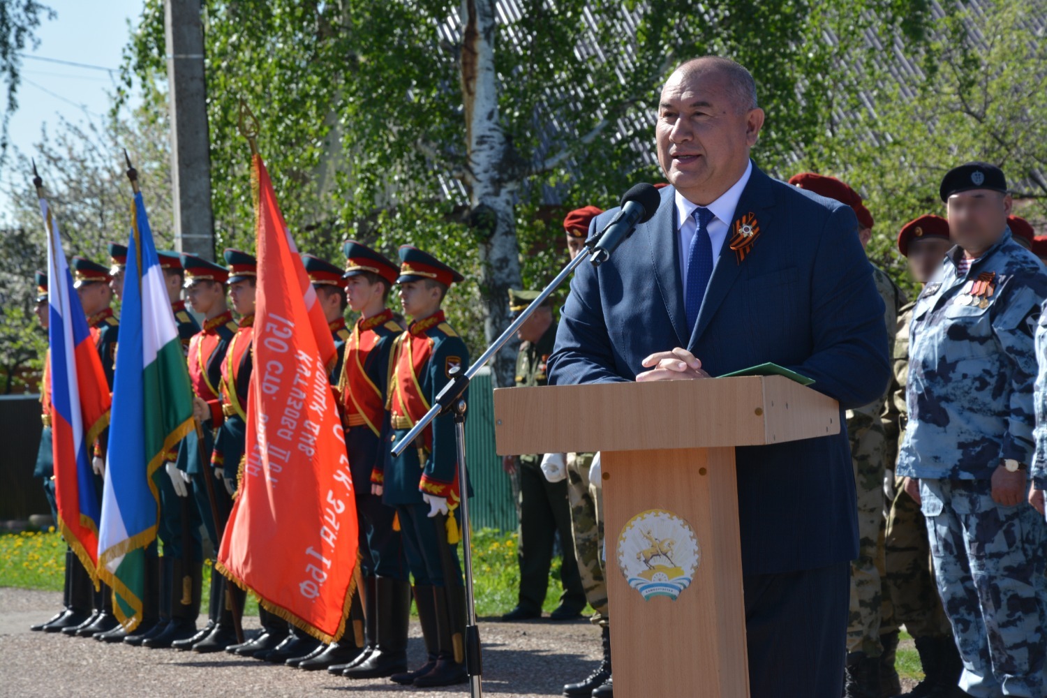 Юбиляр принимал подарки от гостей, звучали музыкальные поздравления. Завершился день парадом, который ветерану устроили прямо у дома. За знаменной группой шли отряд спецназа им. Шаймуратова, бойцы ОМОН «Урал», кадеты Росгвардии, класс Шаймуратова Толбазинской башкирской гимназии, юнармейцы, ветераны локальных войн вместе с участниками СВО из нашего района.