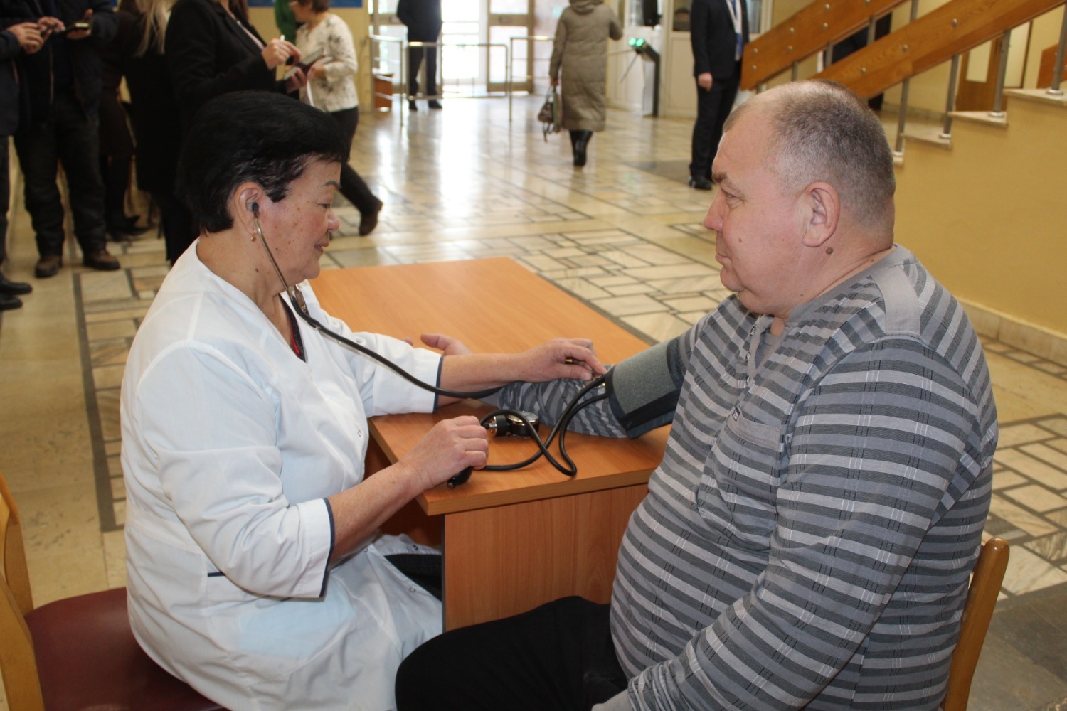 В фойе работал медицинский пост, где было померить артериальное давление.