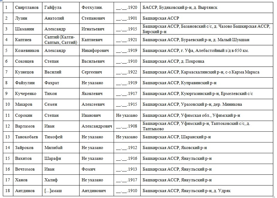 В Износковском районе Калужской области в 2024 году были обнаружены и подняты для перезахоронения останки 1 250 солдат и командиров Красной армии. Все имена установлены, в списках есть уроженцы Башкирии (18 человек). Кроме того, примерно у 20 бойцов место рождения не известно. Работы по разведке, поднятию и установлению имен проводили участники поискового объединения Военно-патриотического клуба «Прорыв».