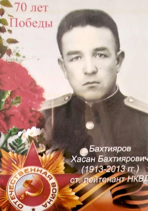 Отец воевал на Кавказе, был награждён медалями, среди которых и «За боевые заслуги». После войны, с 1949 по 1951 годы, одновременно работал и учился в Ташкентской офицерской школе МВД СССР на заочном отделении. Он – член КПСС с 1940 года. С 1953 года и до 80 лет работал уже в Башкирии. Воинское звание отца – старший лейтенант.