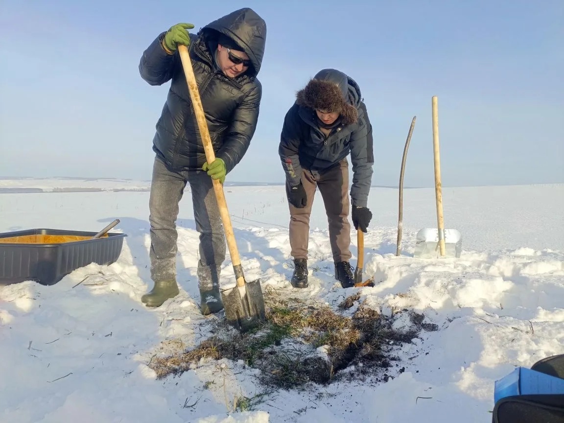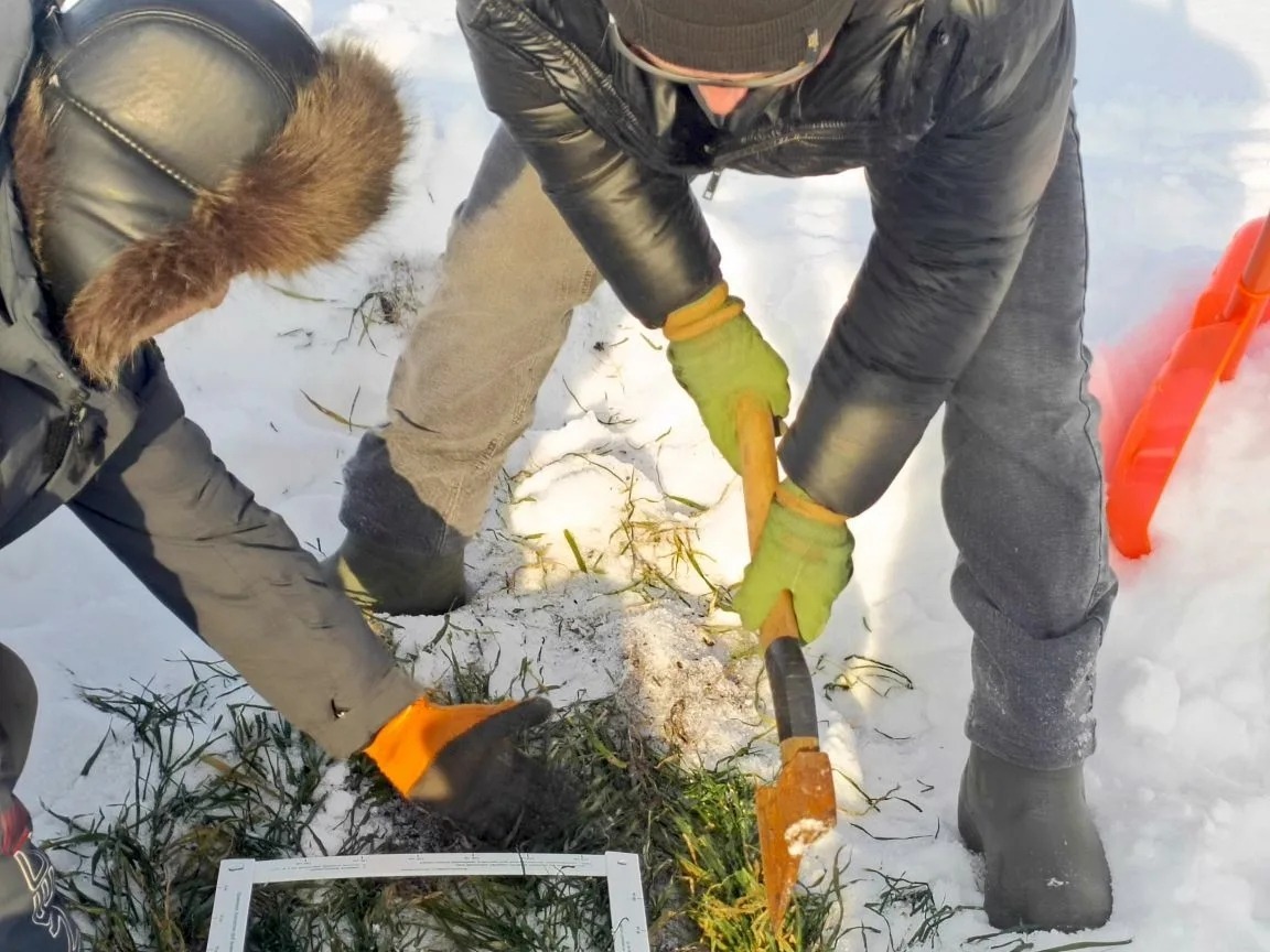 Специалисты Аургазинского МРО филиала ФГБУ "Россельхозцентр" по РБ проводят отбор монолитов (метод оценки состояния) посевов озимых культур.