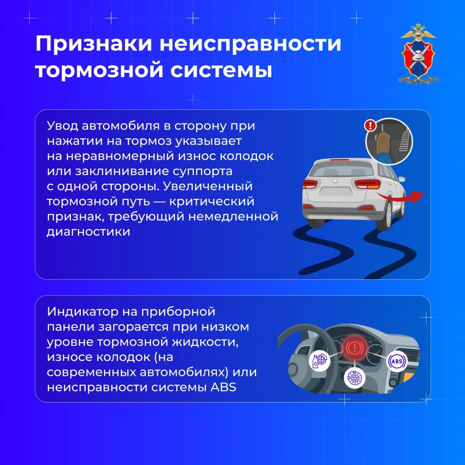 В новых карточках Госавтоинспекции России рассказывают, что делать, если отказали тормоза в автомобиле и как заранее распознать поломку.